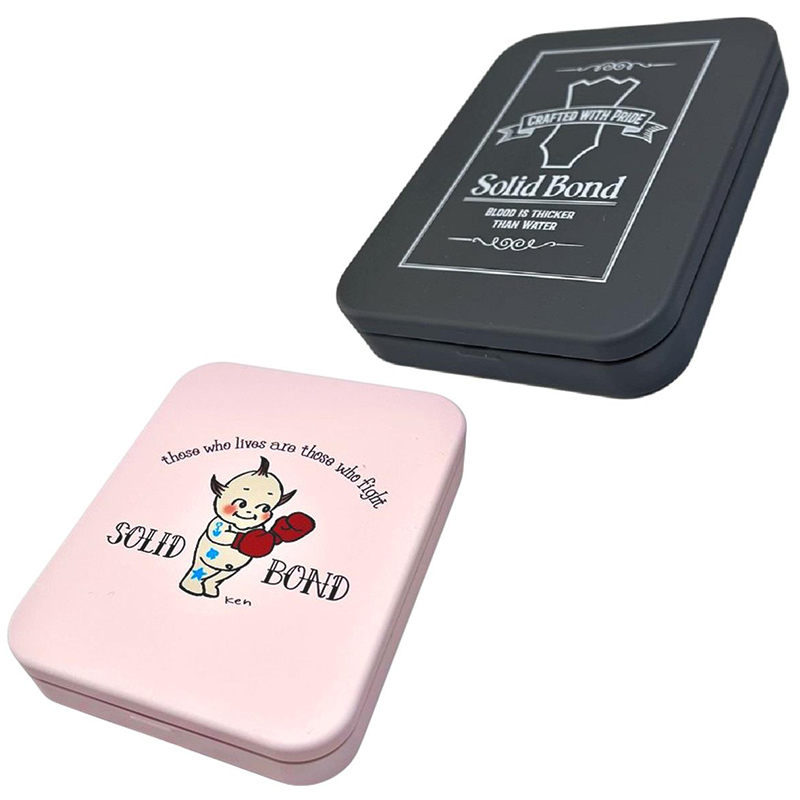 横山健デザインの SolidBond の象徴的なデザインをスクエア型の缶ケースに落とし込みました。ピック、レンチ、その他のケースとして使い道は色々!!