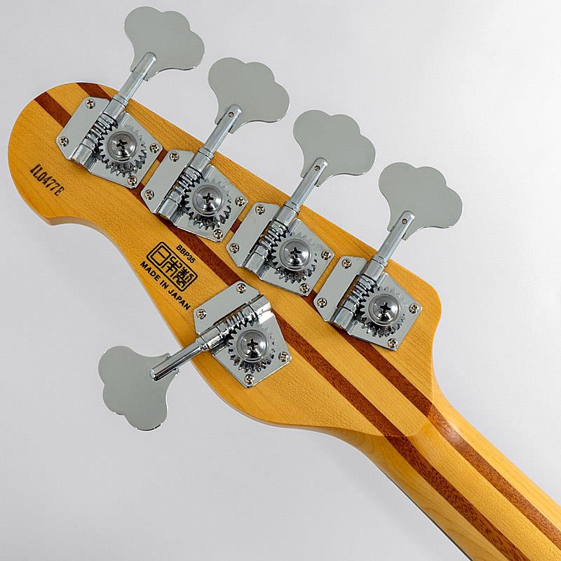 新設計のピックアップには開発段階に100種類以上の試作を新BBで検証を行い、ワイヤー、マグネット、回転数、ボビン形状などの試行錯誤の上、出力が向上しながらもビンテージトーンを出せる、ハイグレードアルニコ5マグネットのPJピックアップを搭載、円柱型のポールピースを採用することでノイズ減少を実現し、ピックアップカバーは汎用的なデザインが用いられ、お好みでカスタマイズも可能になっております。コントロール部はピックアップセレクターから、2ボリューム/1トーン仕様に変更され、各ピックアップバランスの微調整が可能となっております。
