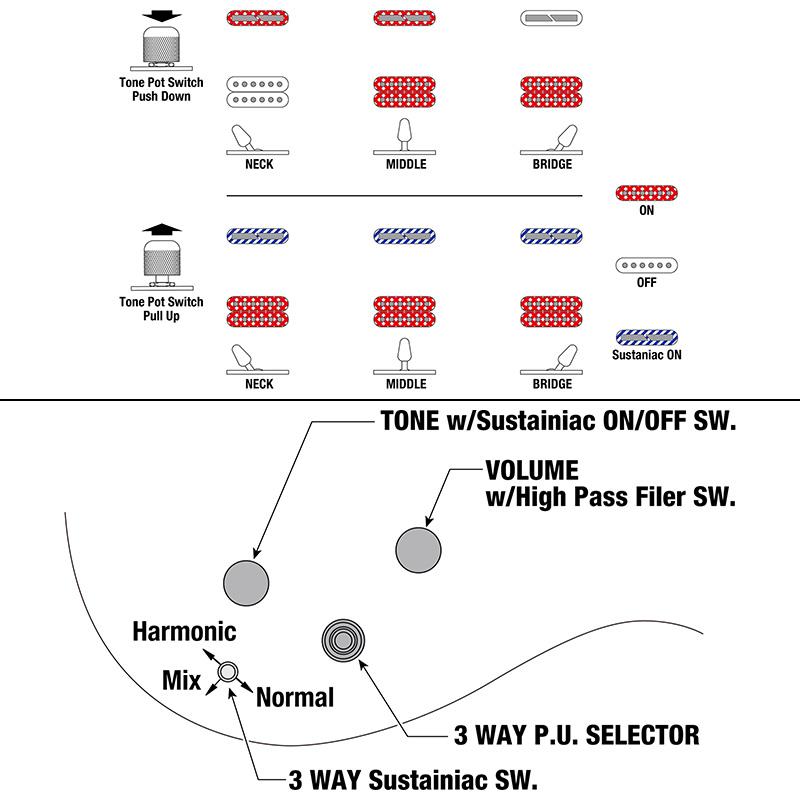 3way・サスティニアック・モード・セレクター・ミニスイッチにより、表現の幅を飛躍的に広げます。 ※006P 電池(9V) 使用。
