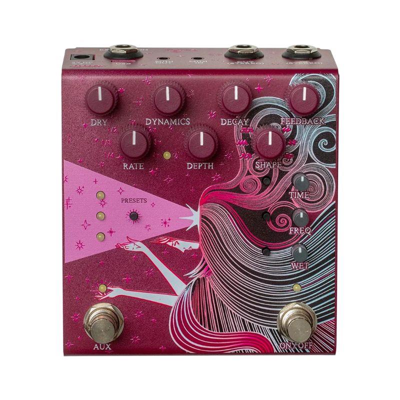 DYNAMICSノブをセンターから右に回すと、設定した音量を超えた入力にのみリバーブがトリガーされます。プレイを重ねるたび残響は新しいサウンドで満たされ、以前の残響はフェードアウト。プレイを止めれば、リバーブサイクル内のトーンが無限にリピートされます。