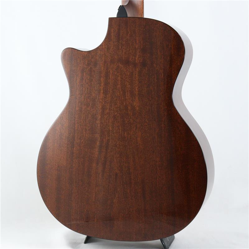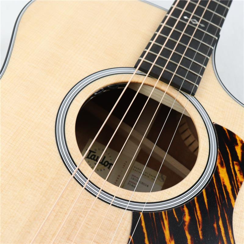 サペリ単板のサイド&バックとシトカ・スプルース単板トップによる組み合わせは、豊かな中域と音のまとまりに優れたテイラーの王道トーンを生み出します。
