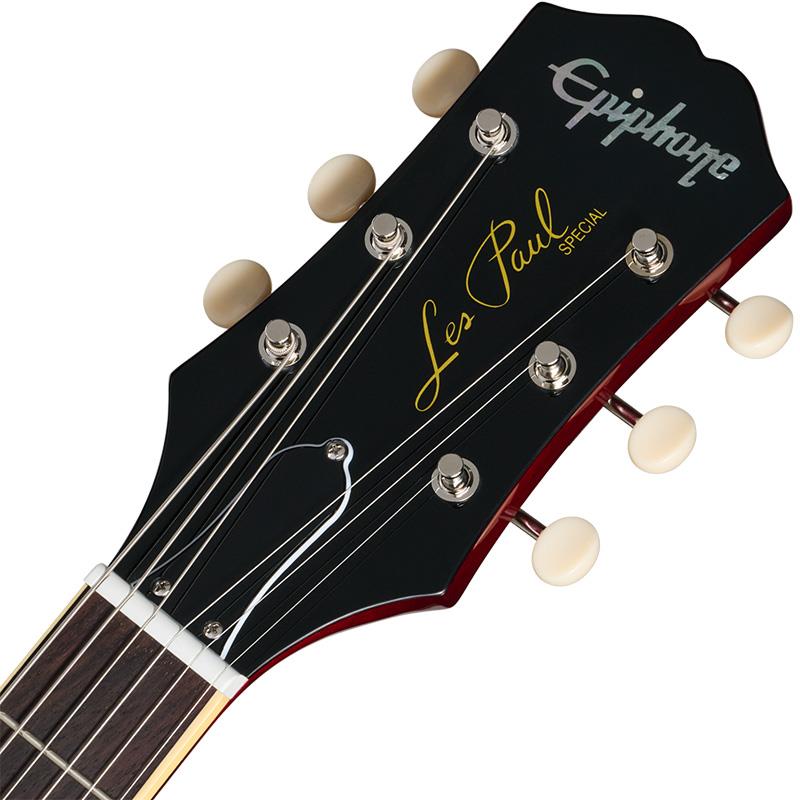 エレクトロニクスも、従来のLes Paul Specialとは異なる仕様を採用しています。一般的なP-90シングルコイル・ピックアップではなく、高い評価を受けているエピフォンProBuckerハムバッカーを2基搭載し、ネック・ポジションにProBucker 2、ブリッジ・ポジションにやや出力の高いProBucker 3を配置しています。各ピックアップは個別のボリュームおよびトーン・コントロールに配線され、3ウェイ・トグル・スイッチと組み合わせることで、高い操作性とサウンド・バリエーションを実現しています。