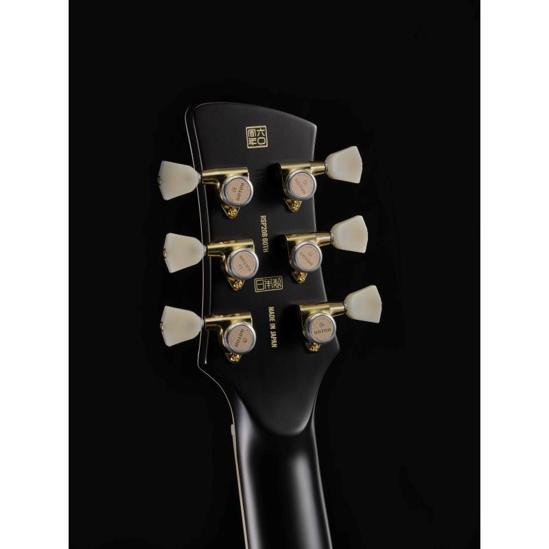外観は、フレイムメイプルトップに加え、洗練されたノーベルブラック仕上げを採用。ヘッドストックとトレモロユニットには記念ロゴが刻印され、ヘッド裏には「Made in Japan」と60周年記念の判子が施されています。