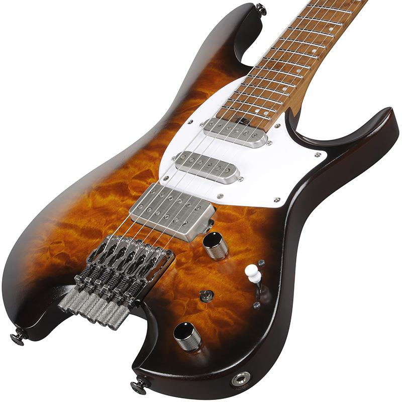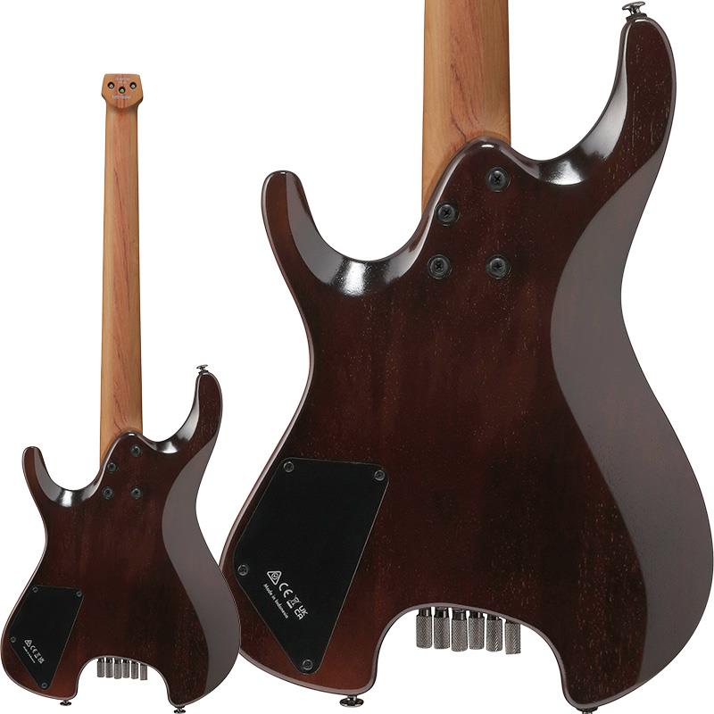 様々なプレイヤーの演奏スタイルを研究し、ピックアップ、ブリッジ、ストリング・ロックといったパーツ類からボディの設計に至るまで、独自性とオリジナリティを追求しています。そうして生まれたこのQは、ジャンルを問わずに自らの可能性を追求し続けるギタリストのあくなき探求心を満たす、そんなヘッドレス・ギターなのです。