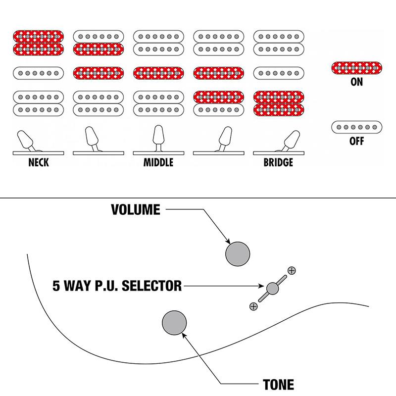ネック・ポジションにはクリアかつウォームなサウンドが特徴のAir Norton 、ミドル・ポジションにはブライトかつノイズ・レスなサウンドが特徴のTrue Velvet 、ブリッジ・ポジションには高音域から低音域までバランスよく出力しパワフルなサウンドが特徴のThe ToneZoneを搭載しています。