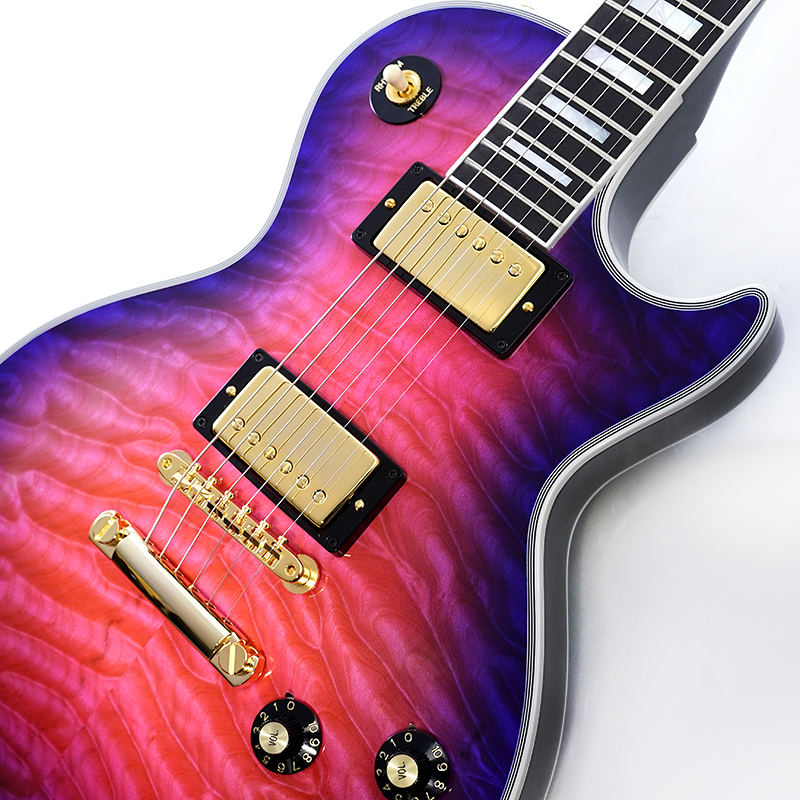 ベースとなるモデルはロックギタリストから熱い支持で高い人気を誇る1968 Les Paul Customをセレクト。ボディトップには2024年10月に開催されたGibson Brands Partner Experienceのツアー内でイケベスタッフがファクトリーで選定した、特上の7A Quilt Mapleを使用。イケベ各店のGibson担当者がこの素晴らしいキルト材の杢目を最大限に活かすべくイメージしたカラーリングをそれぞれ1本ずつ採用しております。