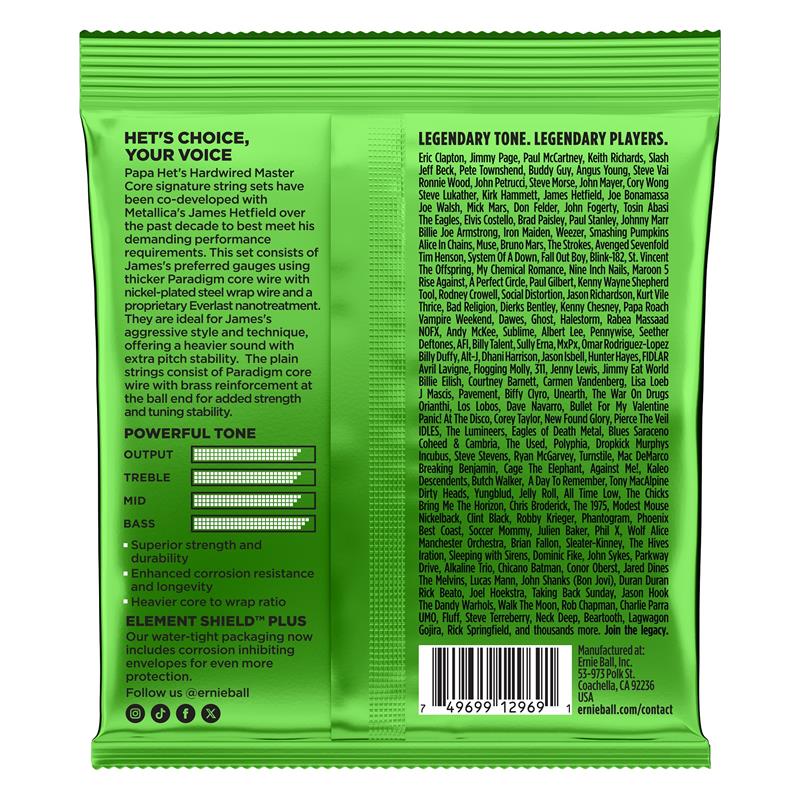 Papa Het’s HandWired Master CoreのシグネチャーストリングセットはMETALLICAのJames Hetfield(ジェームズ・ヘットフィールド)と過去10年に渡り共同開発され、彼のアグレッシブなプレイスタイルとテクニックに最適に応えるために作られました。