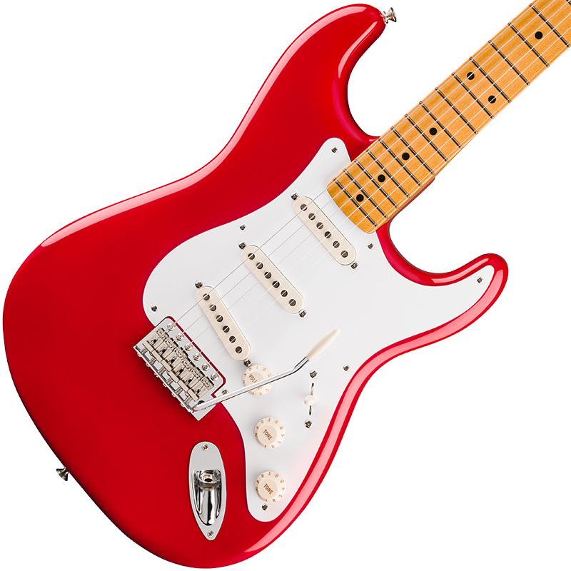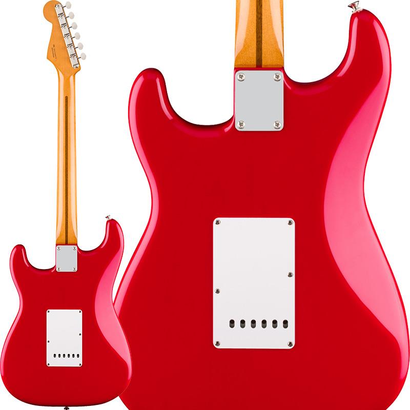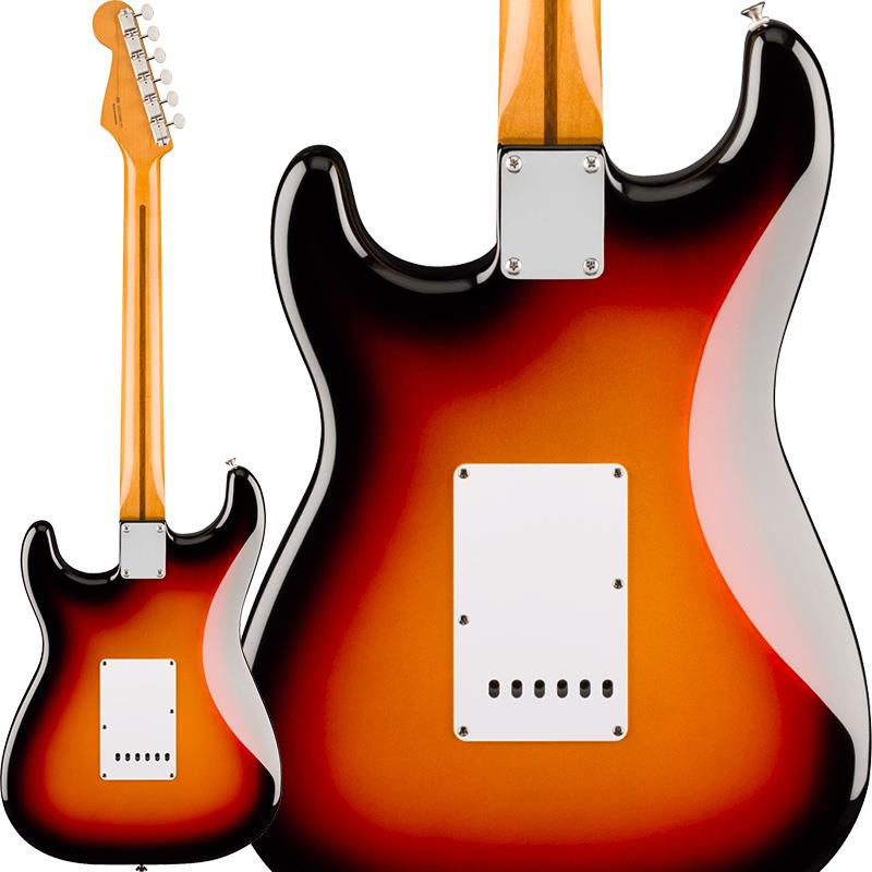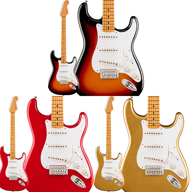 サウンドの要となるピックアップには、50年代後期のスペックを忠実に再現した3基のピックアップを搭載し、Fenderサウンドを確立した明るく音楽的なトーンを余すことなく表現します。ヴィンテージスタイルのシンクロナイズドトレモロは滑らかなヴィブラートを可能にし、年代仕様のヴィンテージスタイルチューニングマシンは、クラシックな外観を保ちながら優れたチューニング精度を実現します。