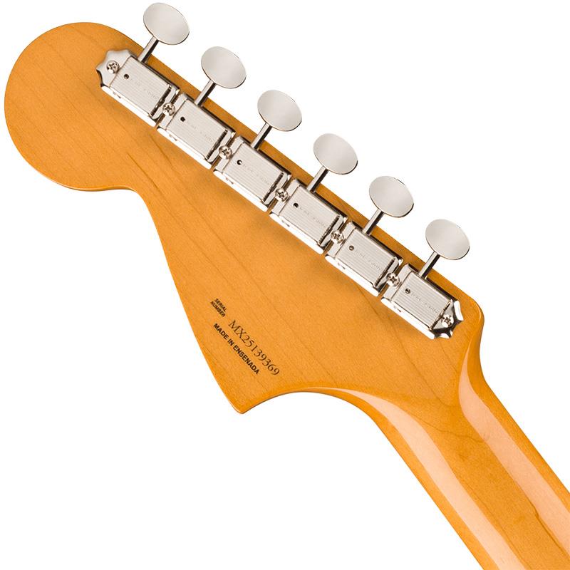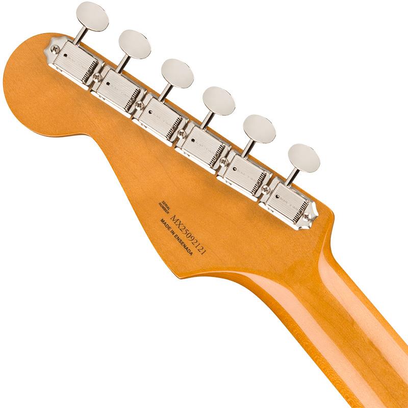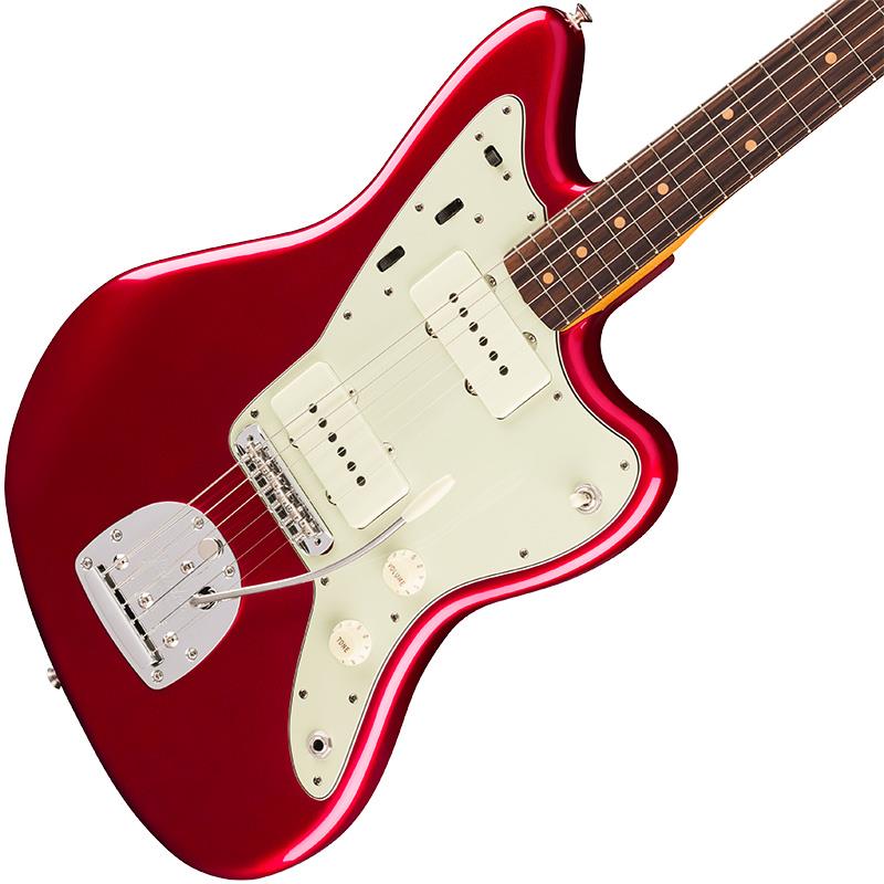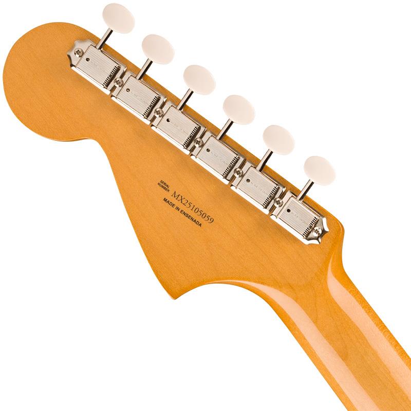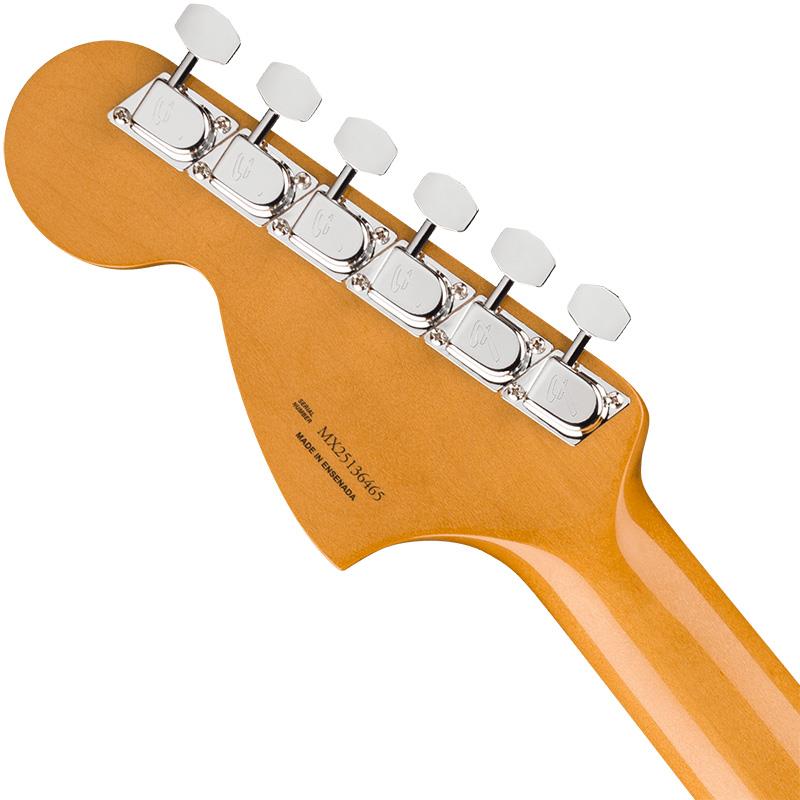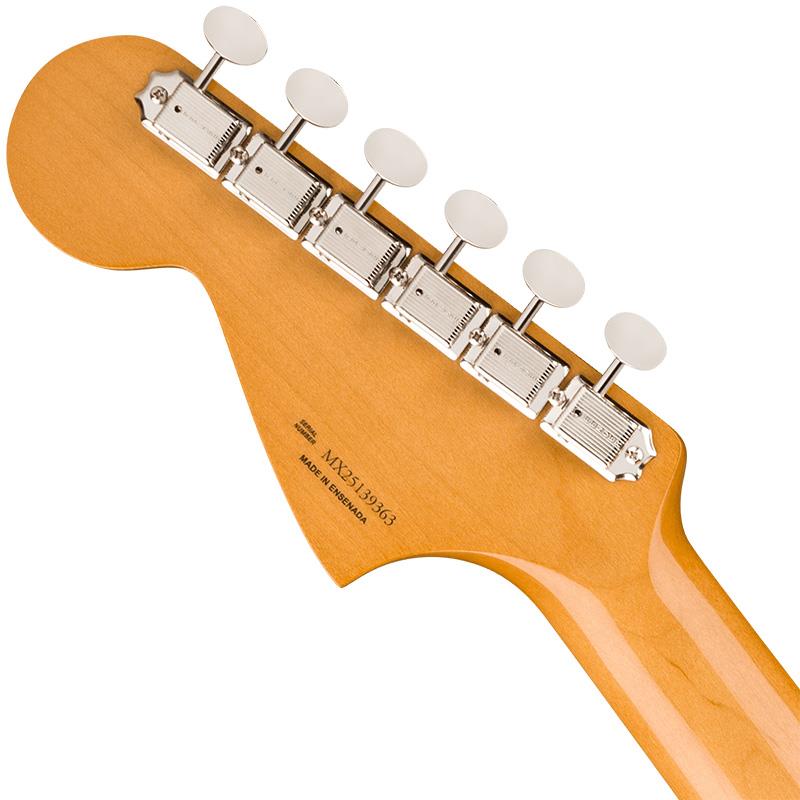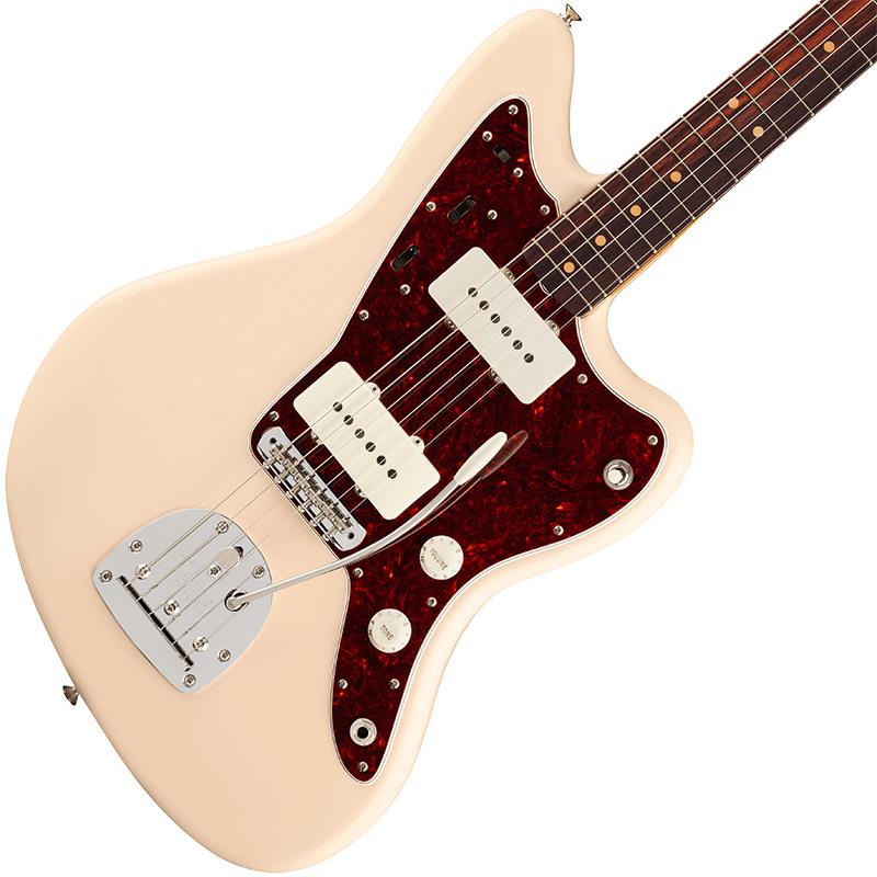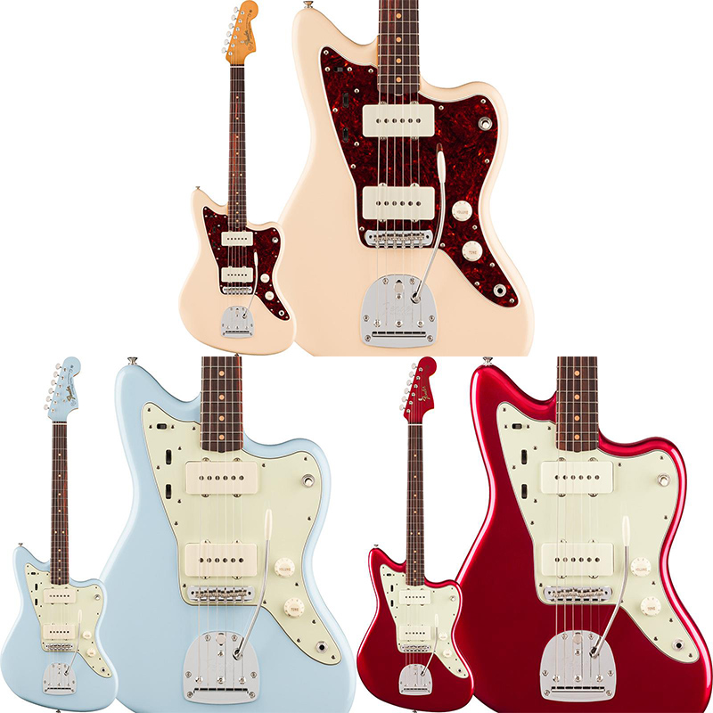 サウンドの要となるピックアップには、丁寧に作り込まれた60年代中期仕様のヴィンテージスタイルシングルコイルを2基搭載し、Fenderサウンドを確立した甘く煌めきのあるトーンを余すことなく表現します。その他、ヴィンテージスタイルのトレモロロック付きフローティングトレモロ、音作りの幅を広げる当時仕様のリズムサーキット、ヴィンテージスタイルのJaguarミュートといった特徴を備えています。ヴィンテージスタイルの様々なディテールがクラシックな美しさをエンハンスし、当時に忠実なチューニングマシンが高いチューニング精度を実現します。