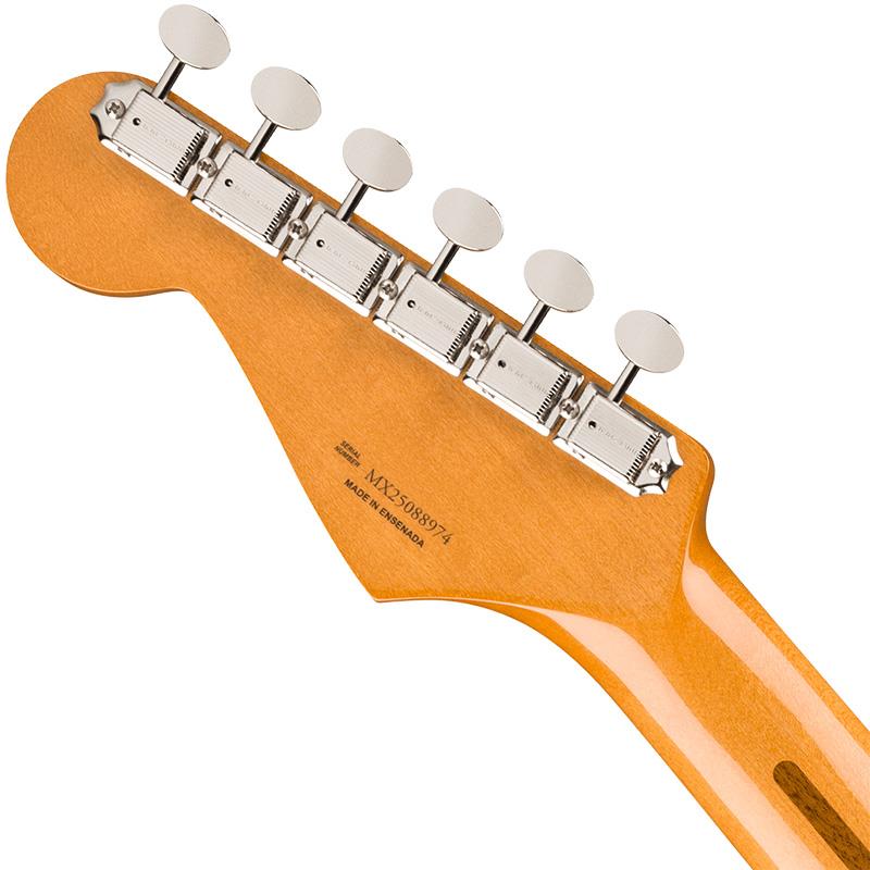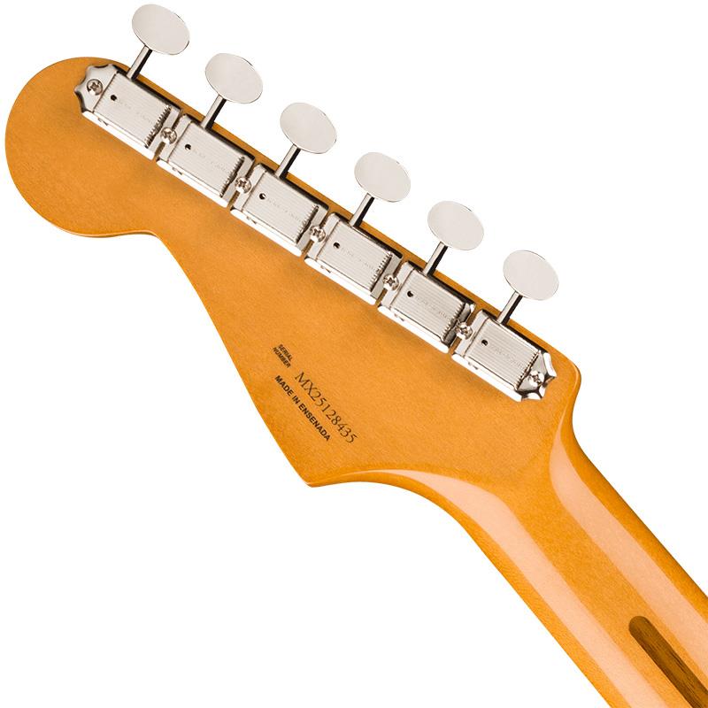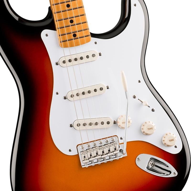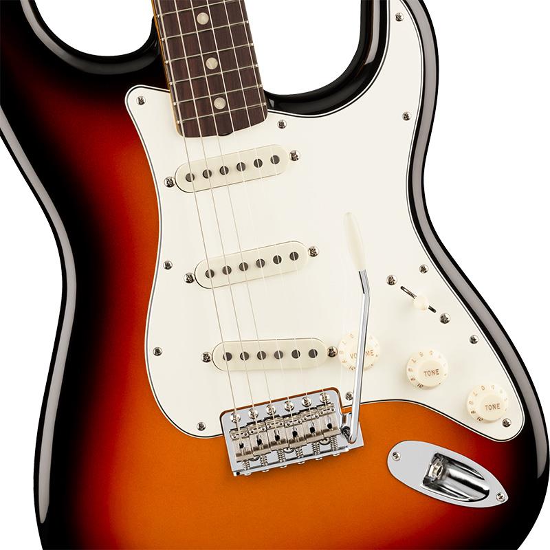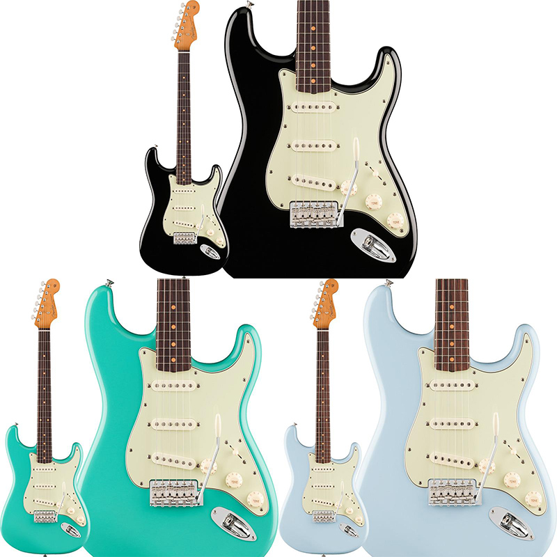 サウンドの要となるピックアップには、丁寧に作り込まれた60年代初期仕様のヴィンテージスタイルシングルコイルを3基搭載し、Fenderサウンドを確立した明るく音楽的なトーンを余すことなく表現します。ヴィンテージスタイルのシンクロナイズドトレモロは滑らかなヴィブラートを可能にし、年代仕様のヴィンテージスタイルチューニングマシンは、クラシックな外観を保ちながら優れたチューニング精度を実現します。