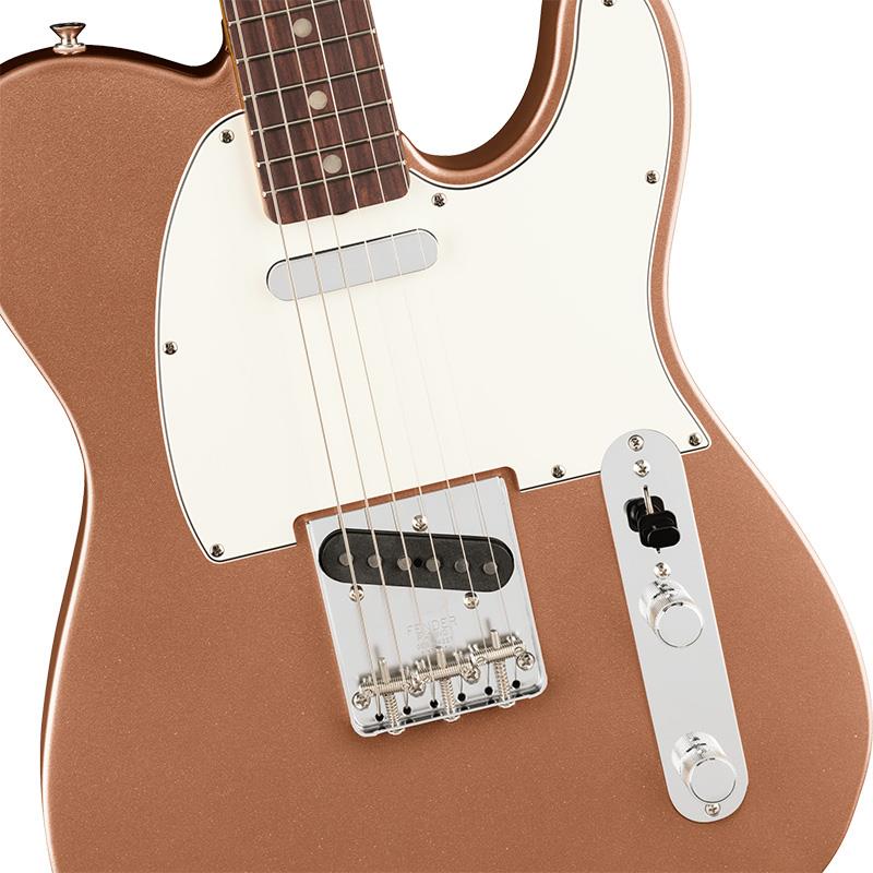 サウンドの要となるピックアップには、丁寧に作り込まれた60年代中期仕様のヴィンテージスタイルピックアップを2基搭載し、Fenderサウンドを確立したブライトでエッジの効いたトーンを余すことなく表現します。ヴィンテージスタイルのスチール製3スレデッドサドルブリッジは60年代らしいトゥワングトーンを生み出します。ヴィンテージスタイルの様々なディテールがクラシックな美しさをエンハンスし、当時に忠実なチューニングマシンが高いチューニング精度を実現します。