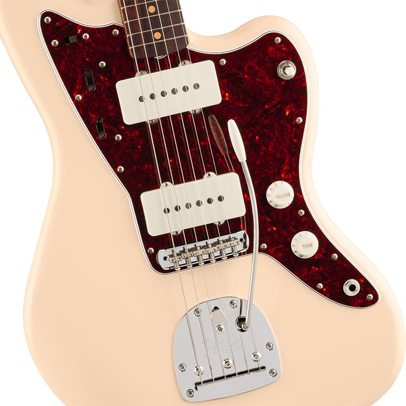 サウンドの要となるピックアップには、丁寧に作り込まれた60年代中期仕様のヴィンテージスタイルJazzmasterピックアップを2基搭載し、Fenderサウンドを確立したブライトでエッジの効いたトーン、そして温かくウッディなミッドレンジを余すことなく表現します。ヴィンテージスタイルのフローティングトレモロブリッジとリズムサーキットスイッチは60年代らしい多彩な表現力とヴィブラートを提供します。ヴィンテージスタイルの様々なディテールがクラシックな美しさをエンハンスし、当時に忠実なチューニングマシンが高いチューニング精度を実現します。
