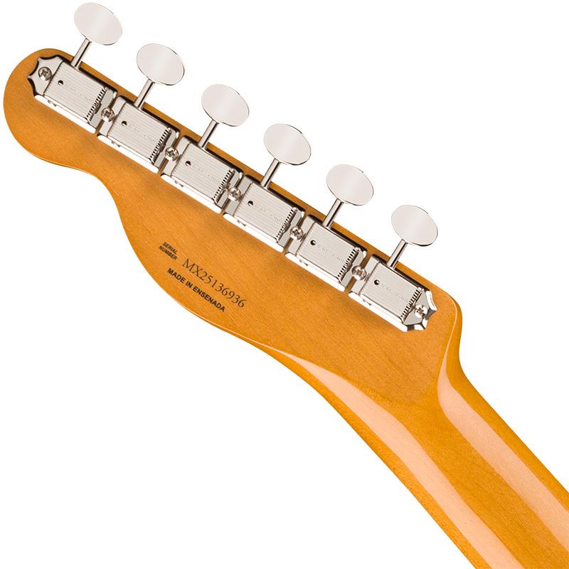 サウンドの要となるピックアップには、丁寧に作り込まれた50年代後期仕様のヴィンテージスタイルシングルコイルを2基搭載し、Fenderサウンドを確立したブライトでエッジの効いたトーンを余すことなく表現します。ヴィンテージスタイルの3スチールバレルサドルブリッジは50年代らしいトゥワングトーンを生み出します。ヴィンテージスタイルの様々なディテールがクラシックな美しさをエンハンスし、当時に忠実なチューニングマシンが高いチューニング精度を実現します。