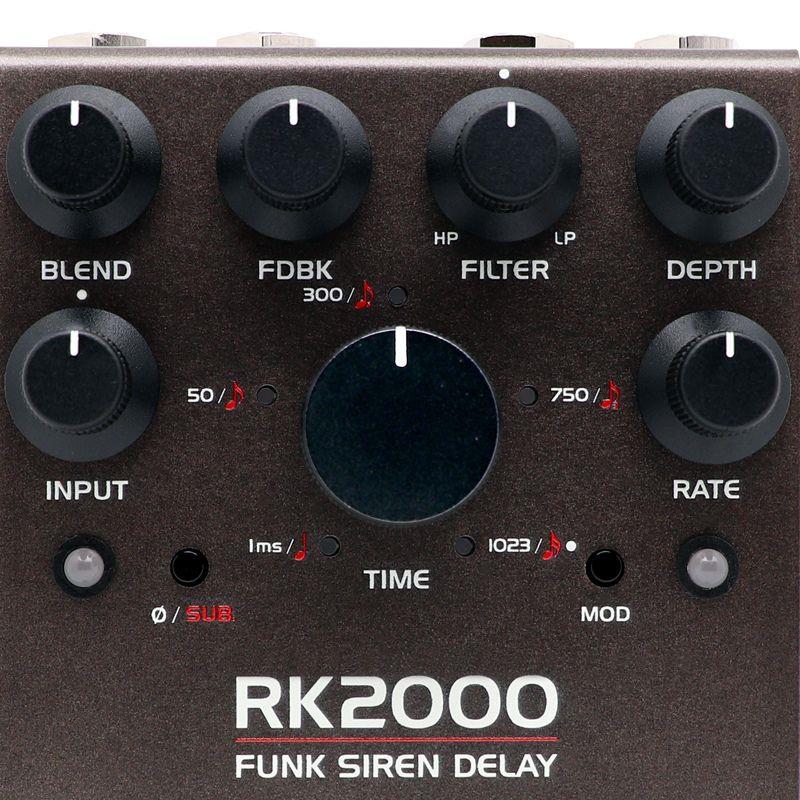 RK2000は、ディレイをルーパーのように扱う「Funk Siren」奏法を実現するペダルです。約1秒のディレイにフレーズを重ね、モジュレーションを加えることで、“サイレン”のようにうねる独特のサウンドを生み出します。